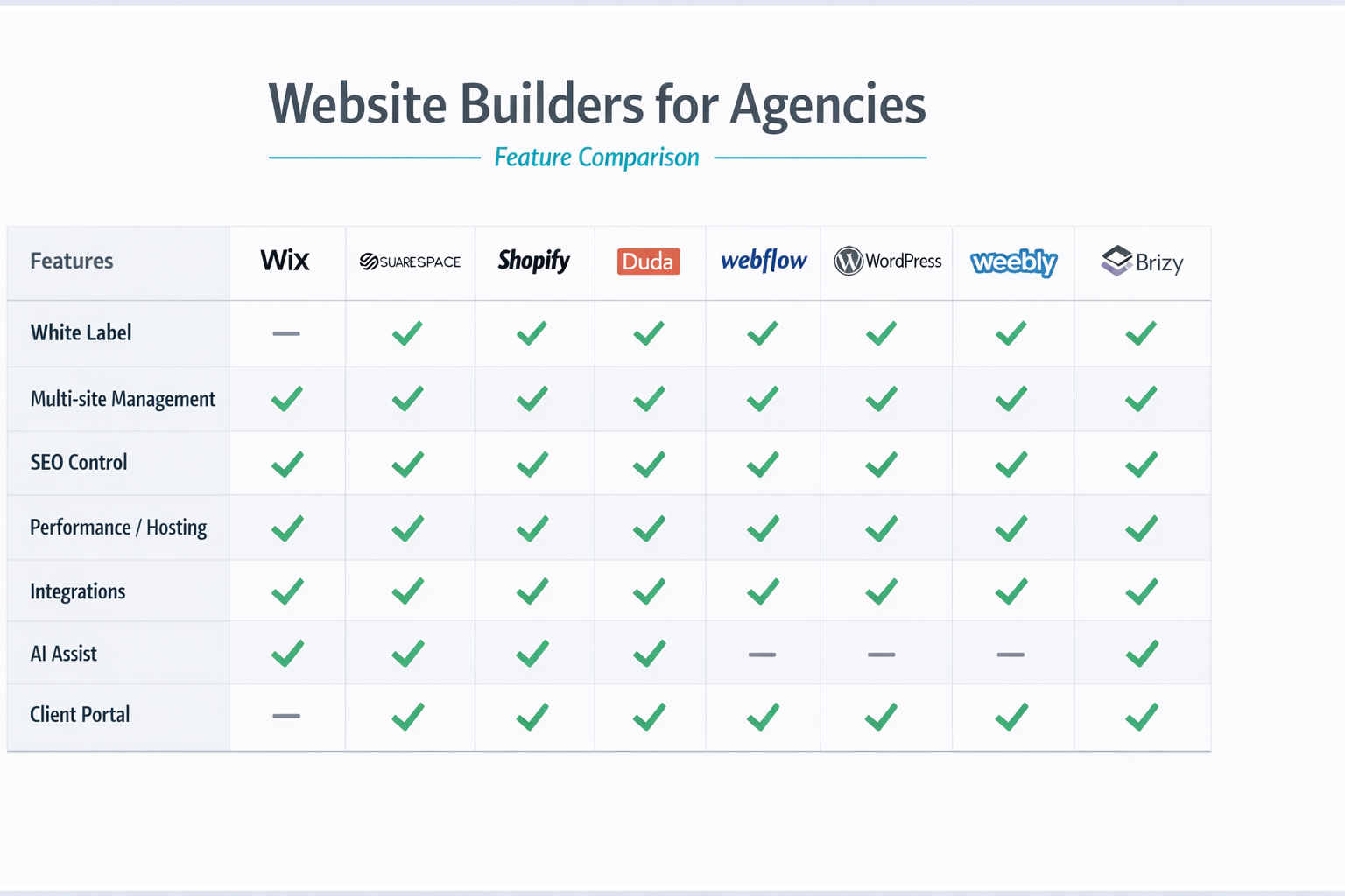 Wix-style platforms can compete on breadth. For agencies, the question is whether the agency workflow and permissions match your delivery model.