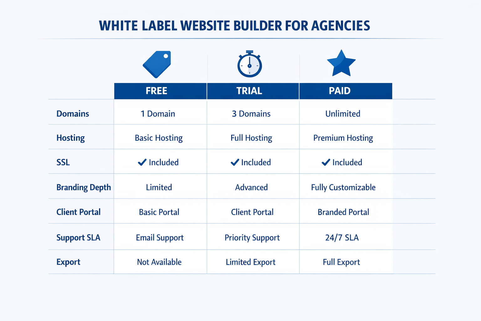 If you are looking for a white label website builder free plan, use this section as your filter. If the platform misses these, treat it as a demo tool, not something you can sell.