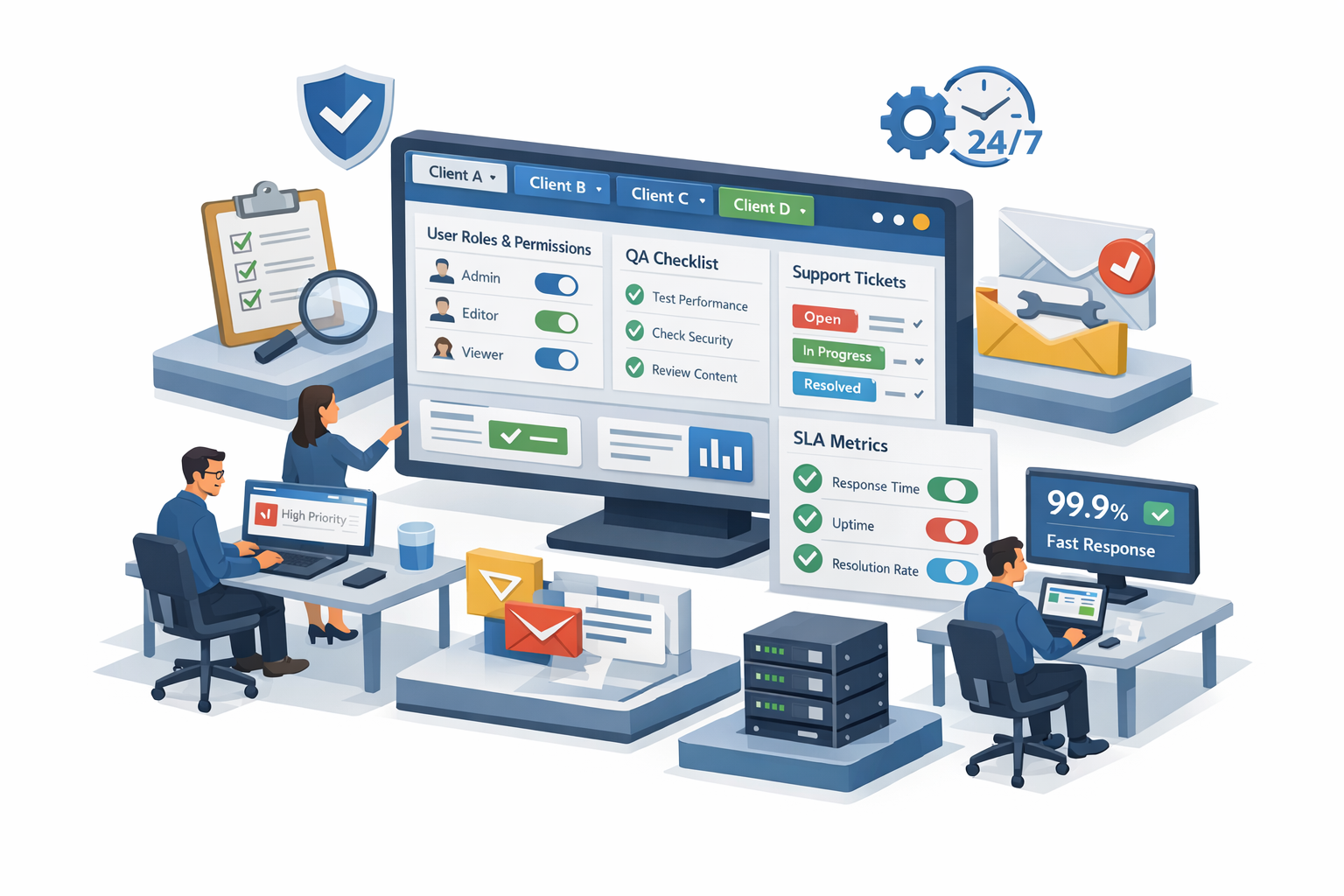 Per renderlo concreto, ti consiglio di fissare un obiettivo operativo: 20 minuti di supporto medio per sito al mese entro 90 giorni. Se sei sopra, hai due leve: