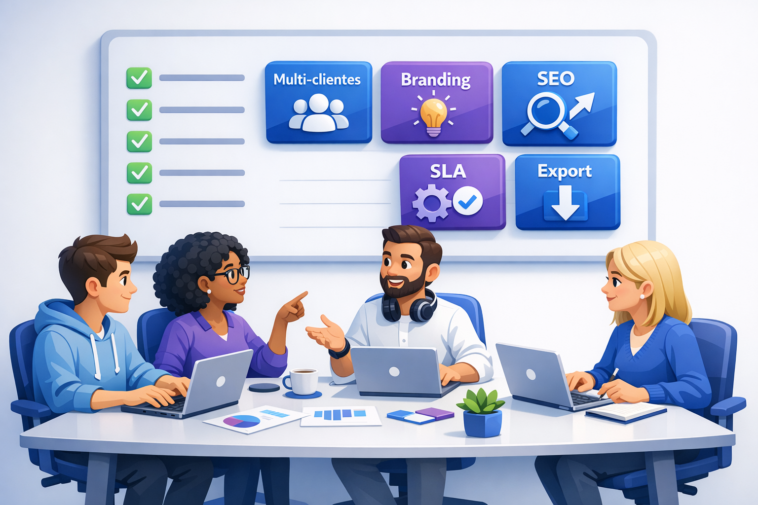 Se a plataforma não te dá controle de multi-clientes, permissões, staging e exportação, você não está escalando. Você está acumulando risco.