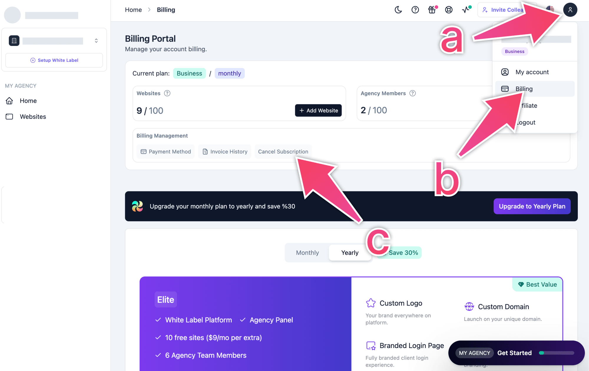 Note: If you encounter any issues cancelling your subscription, contact the support team.